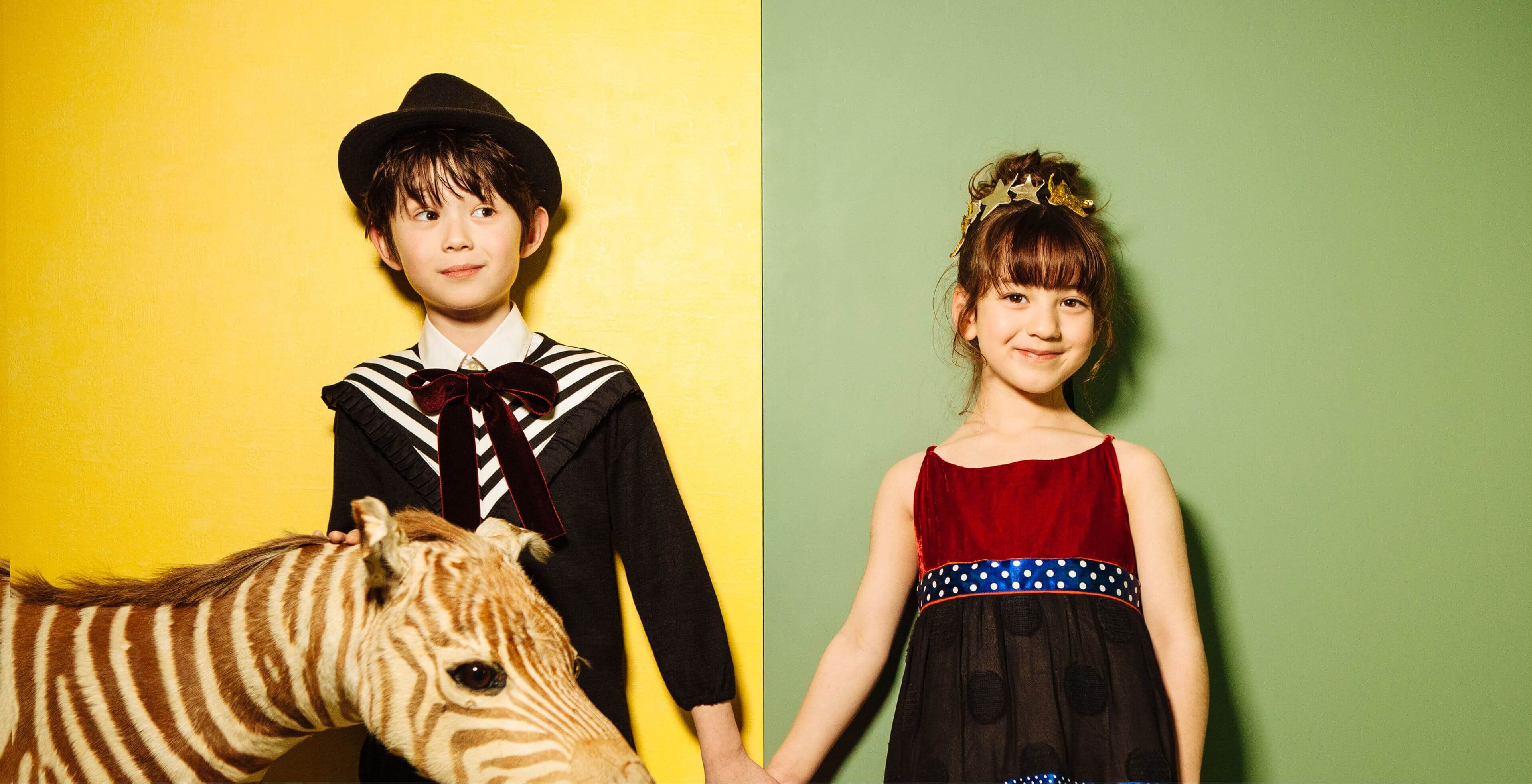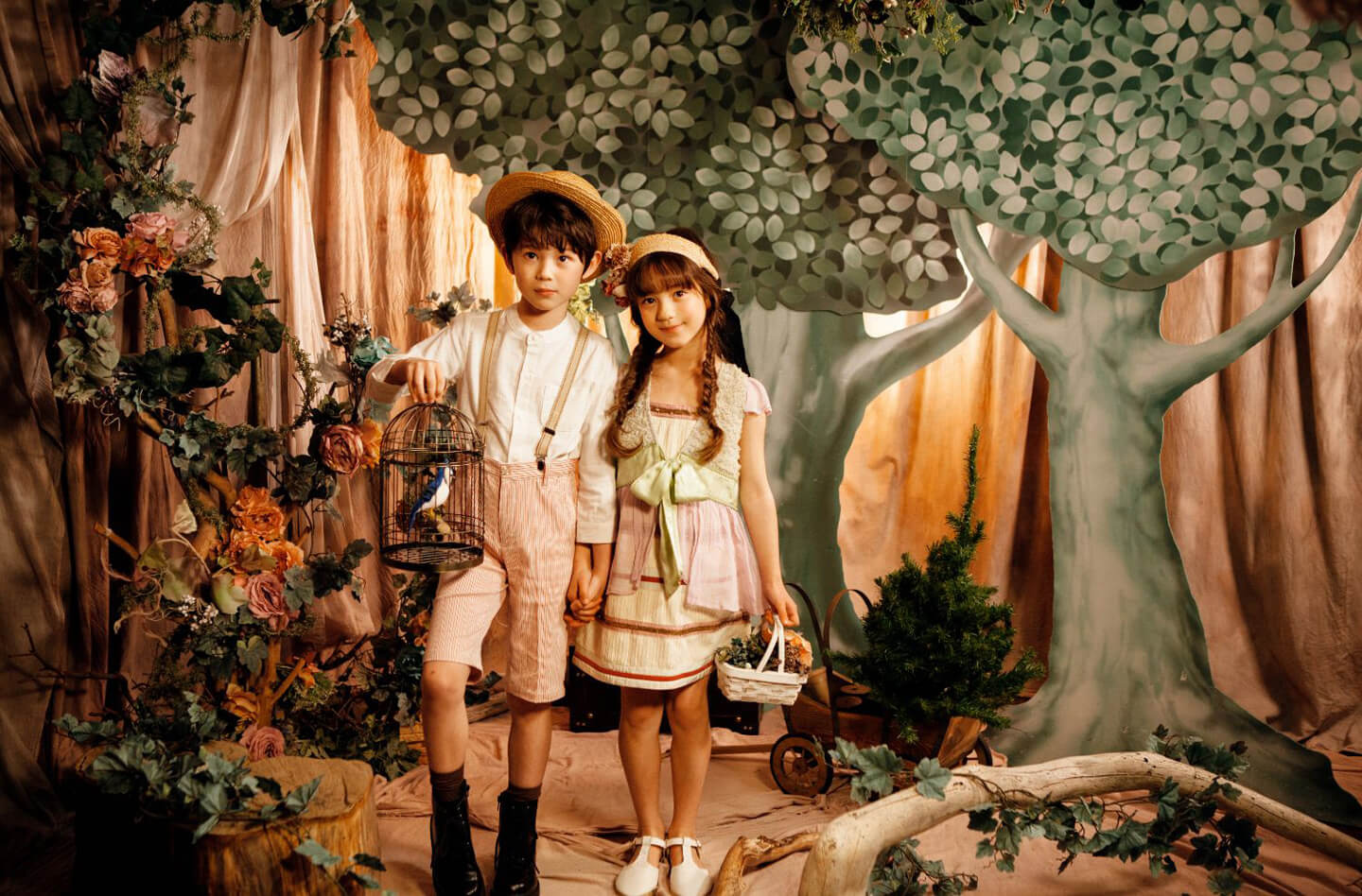 お洒落なスタジオに合わせてスタイリストが衣裳や小物をコーディネート。海外から買い付けたアンティークの小道具やビンテージのアクセサリーそしてオリジナル衣裳の数々。1人1人の個性を引きだします
