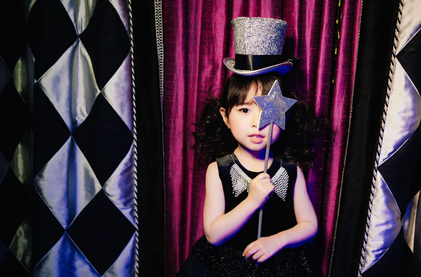 シンプルな愛らしいメイクから、大胆なメイクまでお顔のバランスを見ながら丁寧に作り上げていきます時にはウィッグをつけたり、つけまつげをつけたり、大人顔負けの表情に変身させます